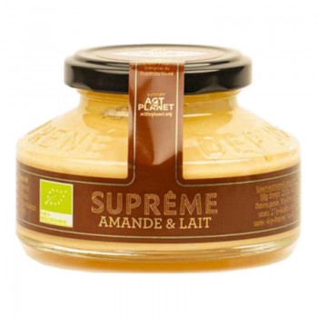 This BIO cream is rich in almonds, of which it contains more than 40%. Almonds are complemented by cane sugar and natural vanilla extract. The almonds are heated at a low temperature to achieve the perfect balance of roasting, which then develops the flavor of the almonds and preserves their beautiful pearlescent color.