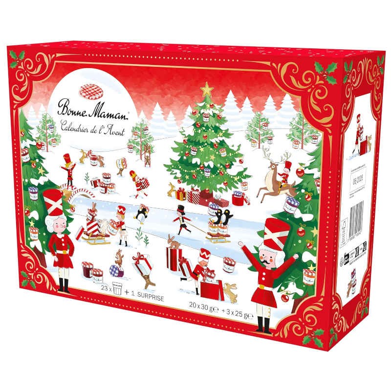 A Bonne Maman francia cég, amely 1971 óta specializálódott az ízletes lekvárok és édes kekszek gyártására, a karácsony közeledtét egy olyan adventi naptárral ünnepli, amely a fiatal és idős ínyenceknek egyaránt örömet szerez. A manók műhelyének mind a 24 ajtaja mögött egy-egy miniatűr meglepetés rejtőzik, amelyet reggeli vagy uzsonna közben élvezhetünk.