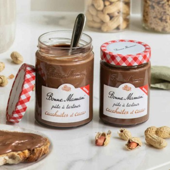 Odkryj nowy, pysznie kremowy przepis Bonne Maman. Krem orzechowo-kakaowy bez oleju palmowego, który doskonale równoważy smak orzeszków ziemnych i kakao.
